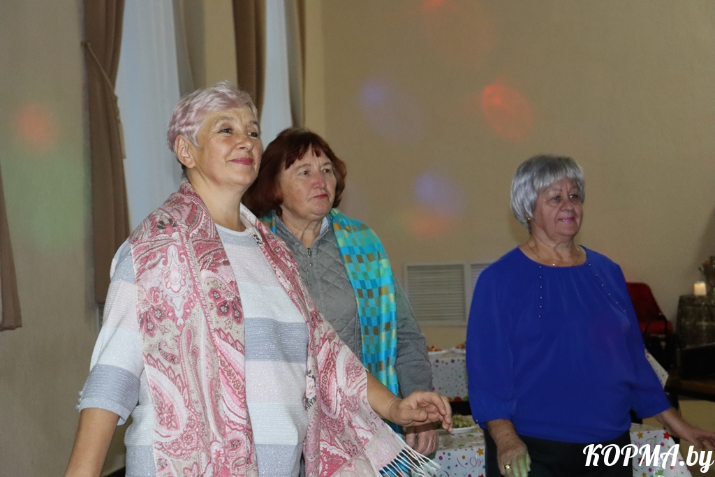 Продолжением встречи стали музыкальные поздравления от артистов Кормянского ЦКиД. Все композиции настолько были наполнены жизнеутверждающим оптимизмом, энергией и праздничным настроением, что просто невозможно было усидеть на месте. И с каждой песней на танцполе становилось всё больше активных и позитивных участников вечера.