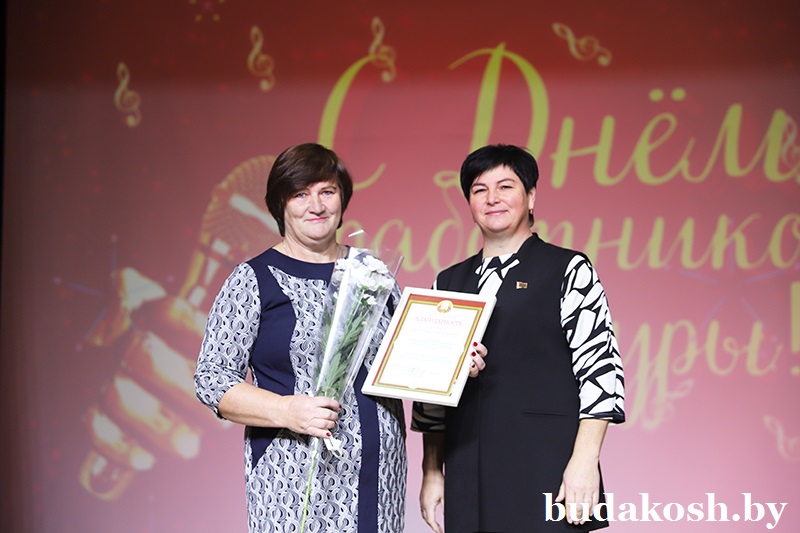 Заместитель председателя райисполкома Людмила Кураликова поблагодарила работников культуры за бережное хранение и приумножение наследия Будакошелевщины и вручила награды.