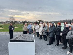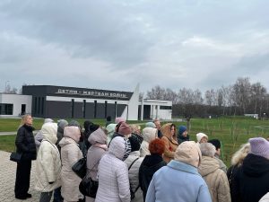 Путешествие началось с посещения мемориального комплекса «Детям — жертвам войны» в Красном Береге. Этот священный для каждого белоруса место напомнило участникам экскурсии о трагических страницах военной истории. Профсоюзный актив почтил память погибших детей и возложил цветы к мемориалу.