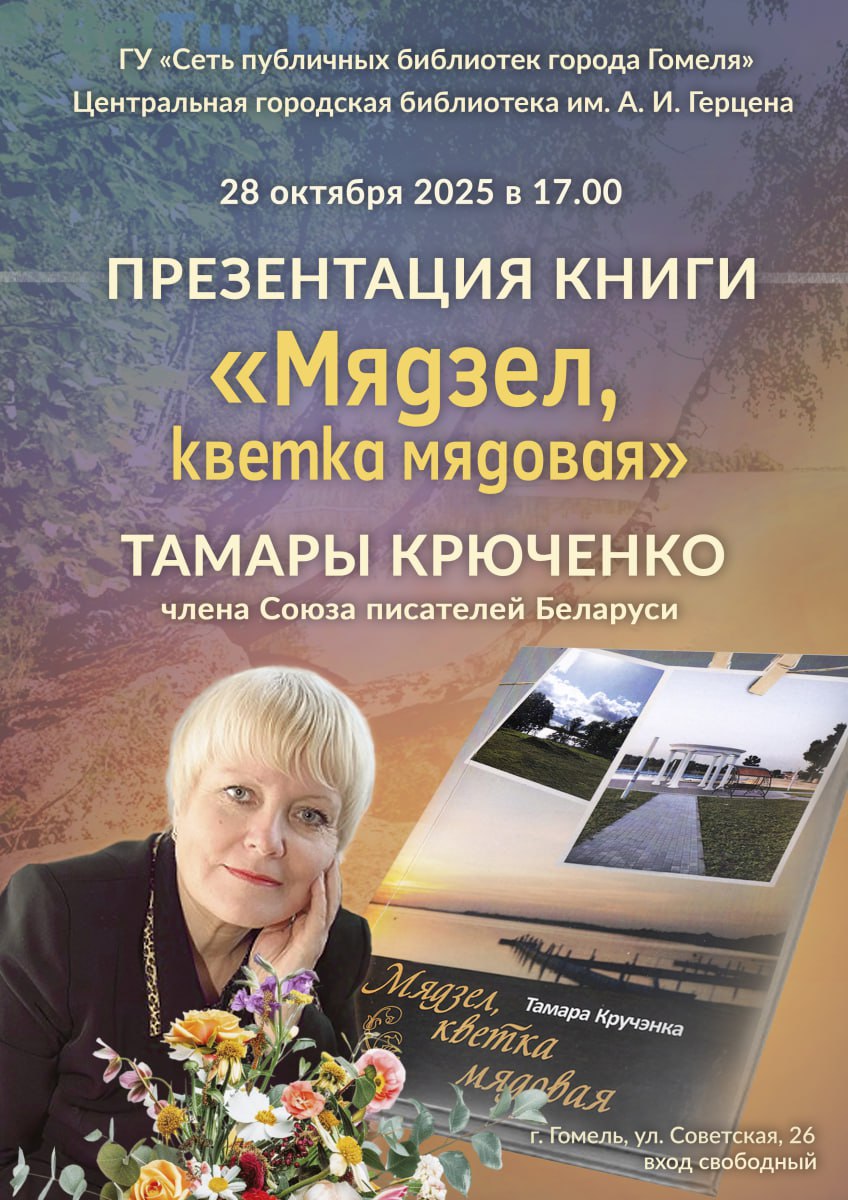 8 октября член Союза писателей Беларуси, Союза писателей Союзного государства, Белорусского союза журналистов представит свою книгу «Мядзел, кветка мядовая» в литературно-художественном салоне «Встречи на Замковой».