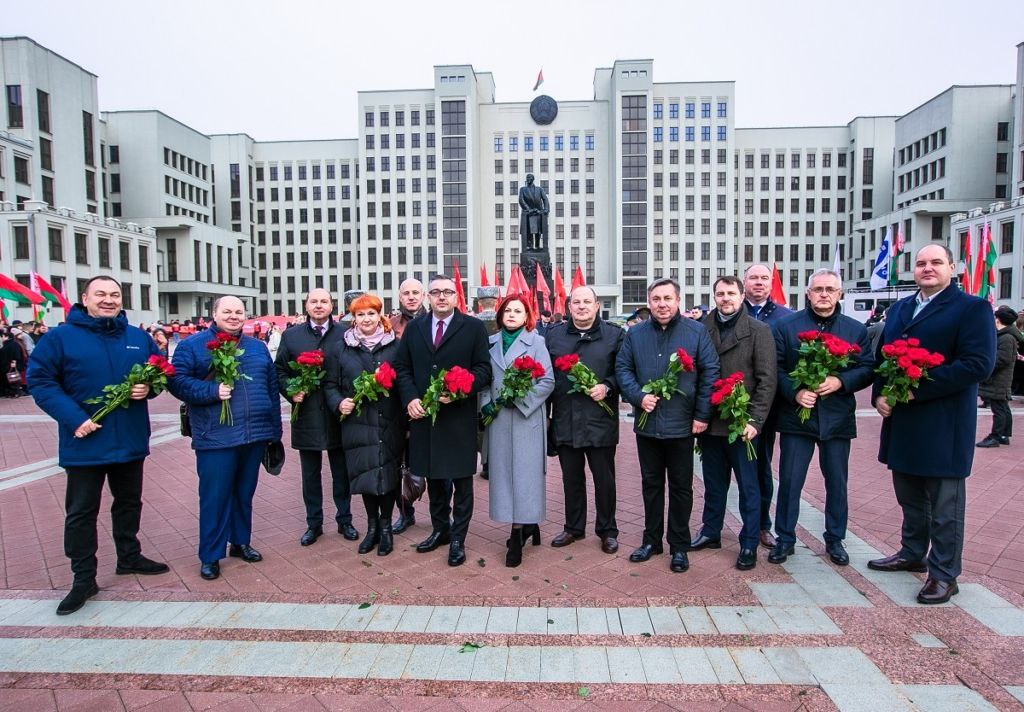 Основным праздничным мероприятием стал митинг на Площади Независимости в Минске. Представители органов власти, общественных организаций, трудовые коллективы, ветераны, молодежь возложили цветы к памятнику Ленину.