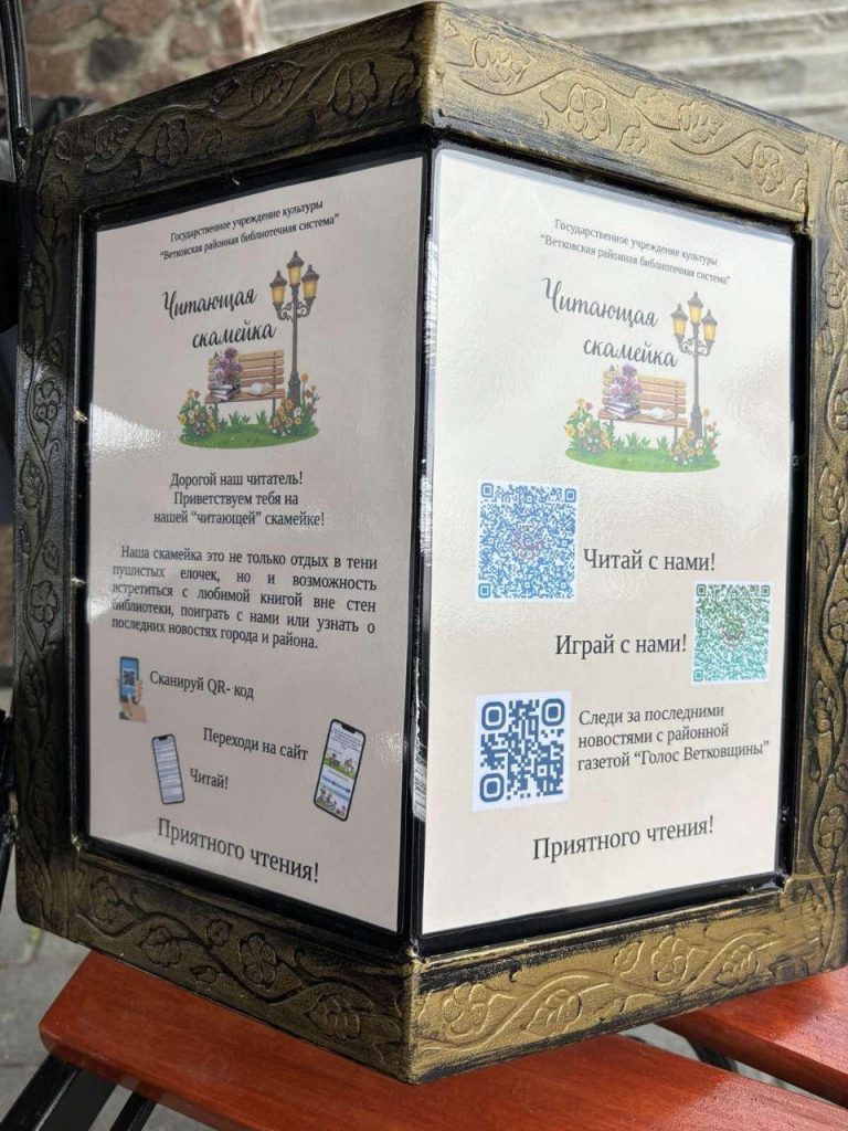 – Этот проект направлен на приобщение к чтению книг людей всех возрастов, в том числе и молодого поколения через удобные для них новые технологии и форматы, – пояснила председатель первичной профсоюзной организации ГУК «Ветковская районная библиотечная система» Анна Боровская. – Наша скамейка – это не только отдых в тени, но и возможность почитать книги онлайн, следить за новостями библиотеки, города и района. Мы хотели создать точку притяжения для горожан всех возрастов, место, где удобно и приятно проводить время с пользой для ума. Это наш способ шагать в ногу со временем и напомнить, что библиотека сегодня – это современный и открытый миру центр.