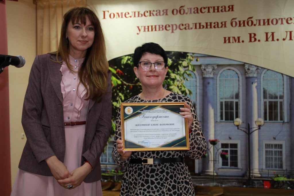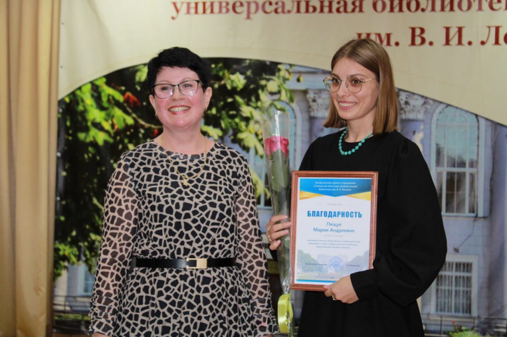 Одной из самых трогательных и традиционных частей праздника стало посвящение в молодые специалисты. Выпускницы Белорусского государственного университета культуры и искусств Анастасия Мазанович и Гомельского государственного университета имени Франциска Скорины Полина Рачкова произнесли клятву верности профессии. Напутствие и ценные подарки они получили из рук настоящей легенды библиотечного дела – Нины Коноваловой, ветерана труда с 45-летним стажем, победителя областного профсоюзного конкурса «Портрет легенды». Этот момент стал красивым символом преемственности поколений и верности профессии.