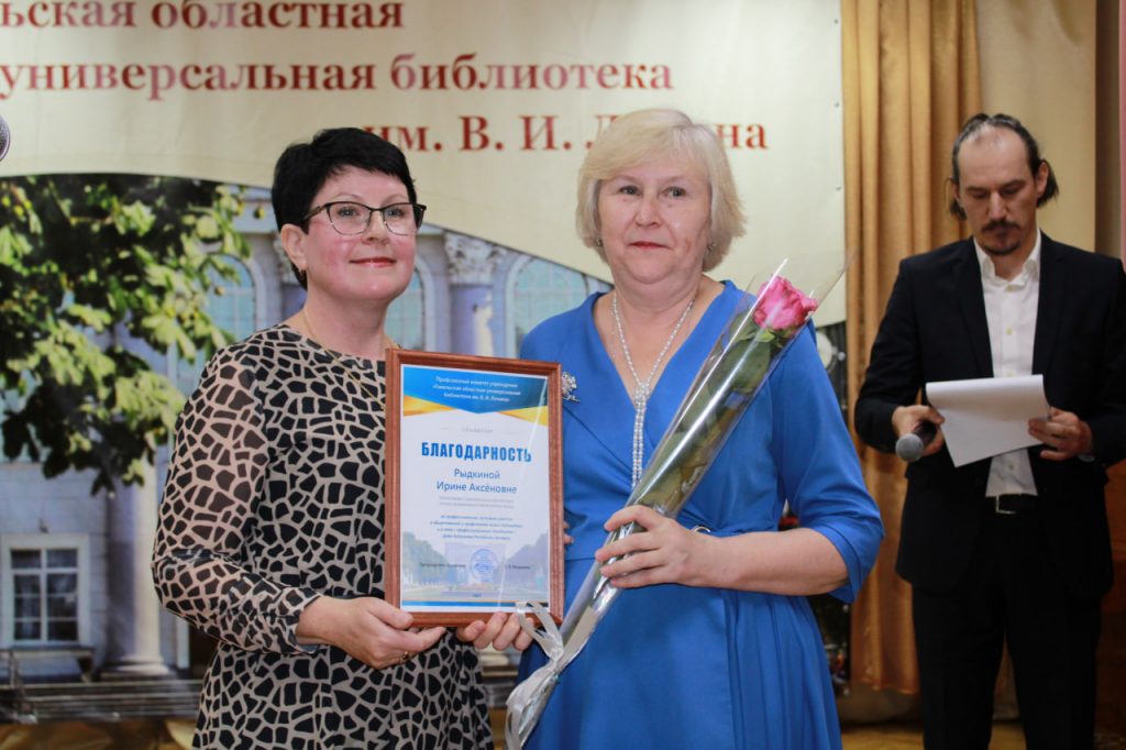 Особые слова благодарности прозвучали в адрес председателя первички библиотеки Елены Мазуриной. За значительный личный вклад в развитие профдвижения Елена Яковец вручила ей Благодарность областной организации отраслевого профсоюза.