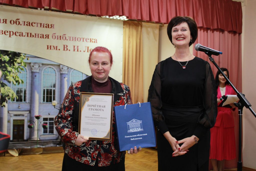 Также в этот день награды библиотекарям вручили представители Железнодорожной районной организации Белорусского Общества Красного Креста, ОО «Белорусский союз женщин» и РОО «Белая Русь». Особую признательность за творческий подход к работе получила библиотекарь общего читального зала Светлана Шимко, удостоенная Почетной грамоты от Гомельского городского отделения Белорусской библиотечной ассоциации.