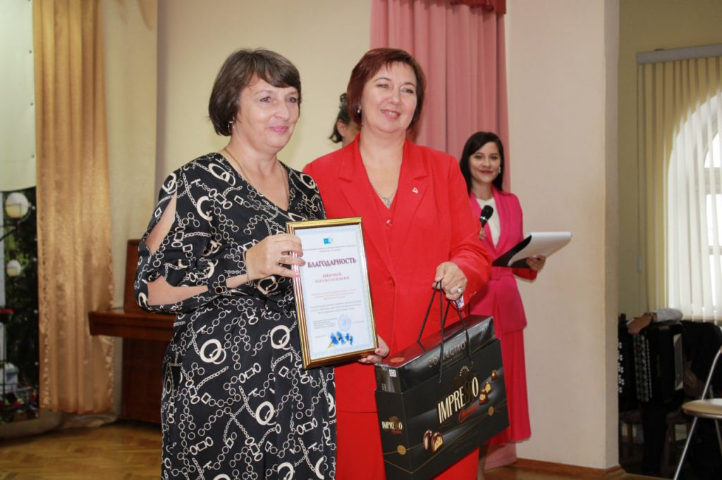После этих трогательных поздравлений Почетными грамотами первичной профсоюзной организации были отмечены ведущий экономист отдела бухгалтерии Елена Григоренко и заведующий отделом обслуживания учащихся 6-9 классов Ольга Хорсун. Благодарности объявлены библиотекарю Ирине Рыдкиной, специалисту по кадрам Марии Пищук и библиотекарю Екатерине Прокопенко.