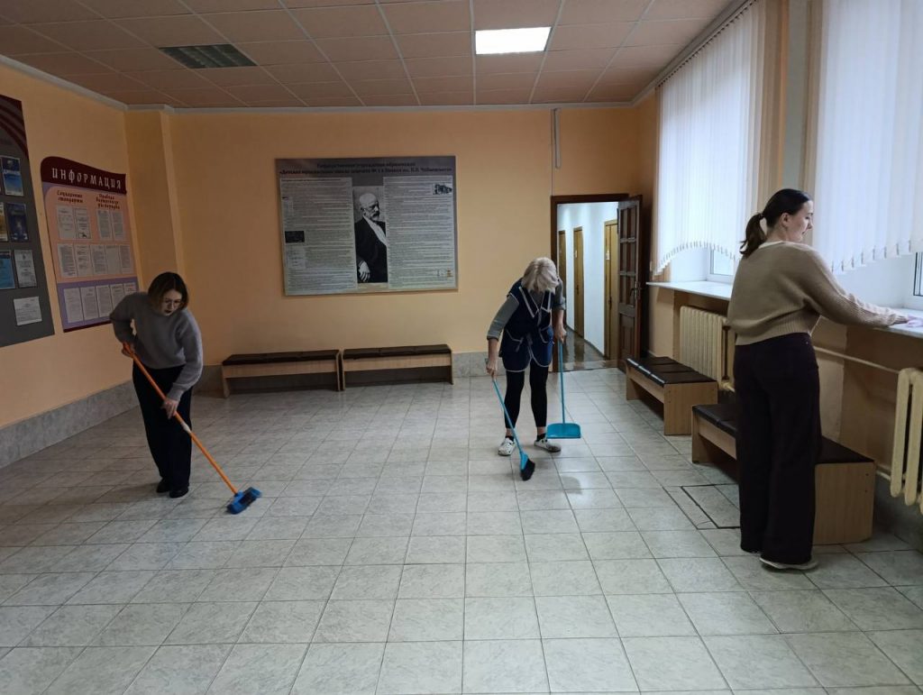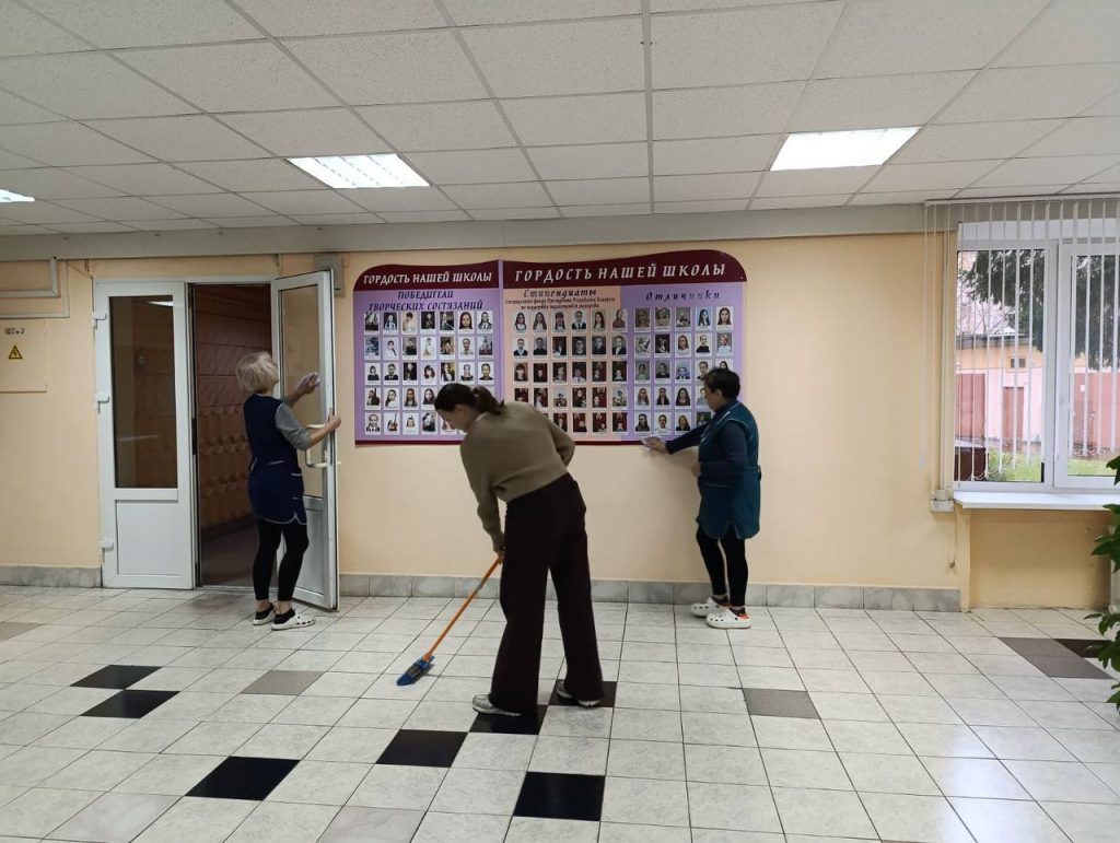 Была проведена тщательная уборка: вся территория очищена от осенней листвы, цветочные клумбы подготовлены к зимнему сезону, а внутренние помещения школы теперь сияют чистотой и уютом.